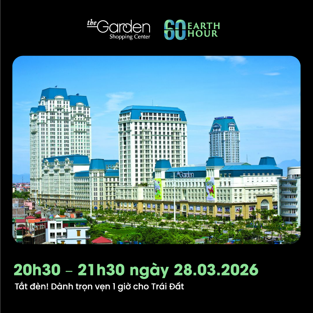 Giờ Trái Đất không chỉ là tắt đèn, mà còn là hành động vì tương lai của hành tinh. The Garden mời bạn dành 60 phút để sống xanh hơn: tiết kiệm điện, giảm phác thải, kết nối với thiên nhiên & lan tỏa ý thức cộng động