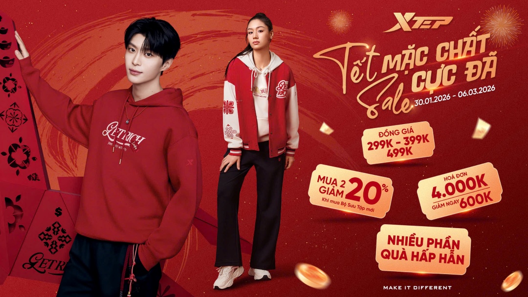 ⏰ Áp dụng từ 30/01 – 06/03/2026 tại hệ thống cửa hàng #Xtep trên toàn quốc.